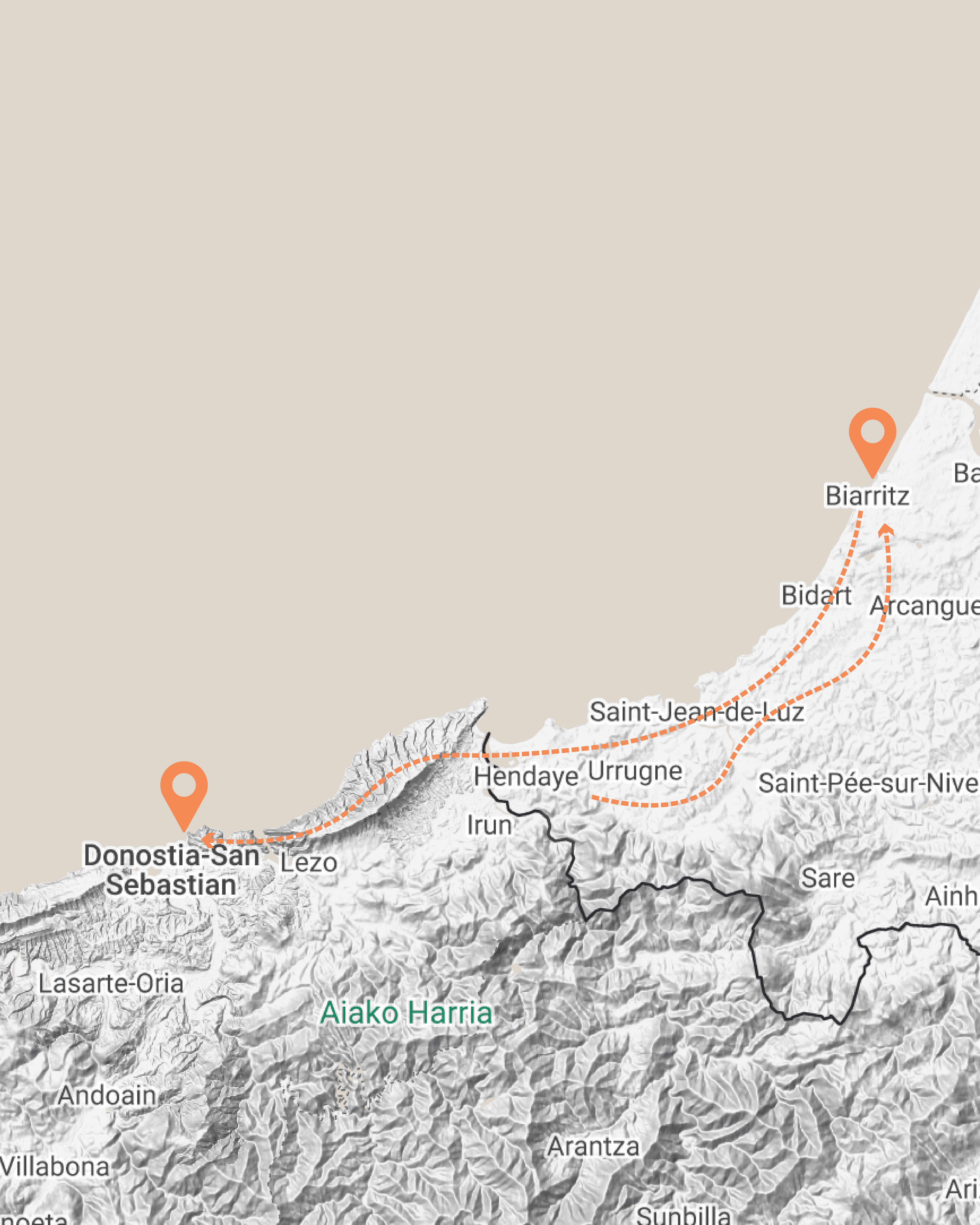Découvrez tous les villages typiques de la côte basque en longeant le littoral. Faîtes une pause pour un cours de surf puis reprenez des forces en déjeunant face à l'Océan car vous allez devoir grimper au sommet du Jaizkibel pour rejoindre San Sebastian. Eh oui, les pintxos ça se mérite !